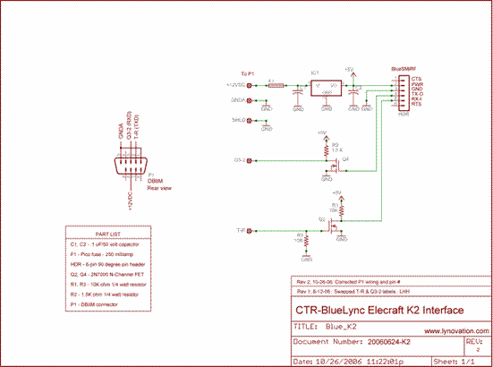 CTR-BlueLync Elecraft K2 Interface Schematic
