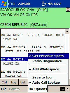 If you want to contribute to the DX cluster, enter your data in the Tx: